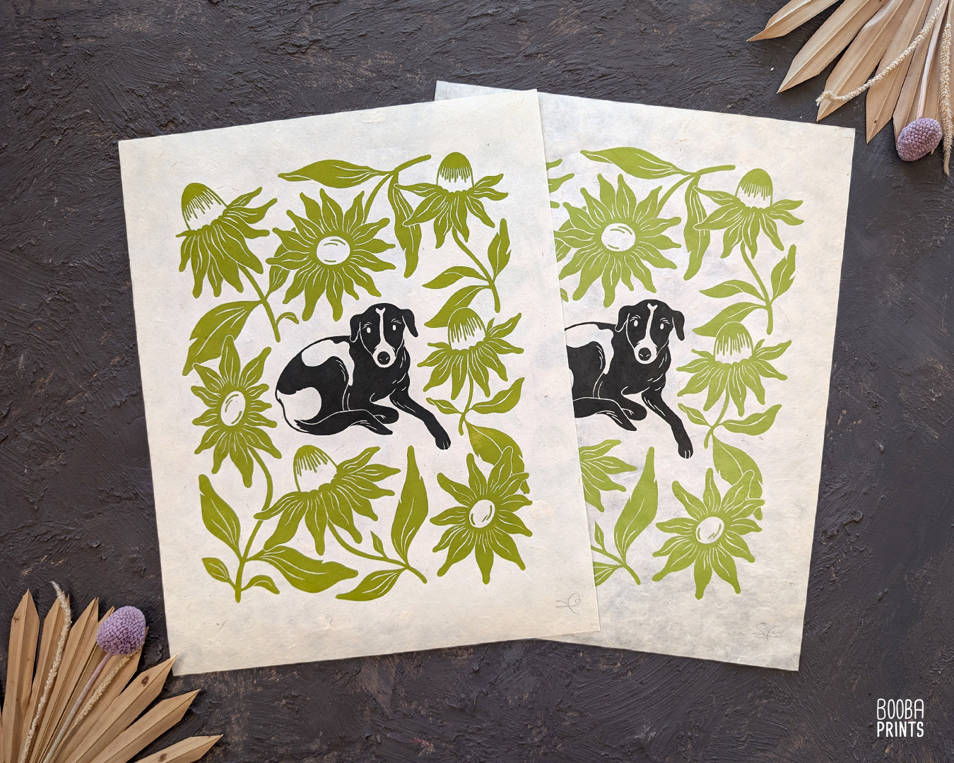 Dogs & Plants it's a follow up series to my Cats & Plants series. Showing love to dogs as well (: Featuring contemporary designs in a traditional handmade technique of linocut printmaking